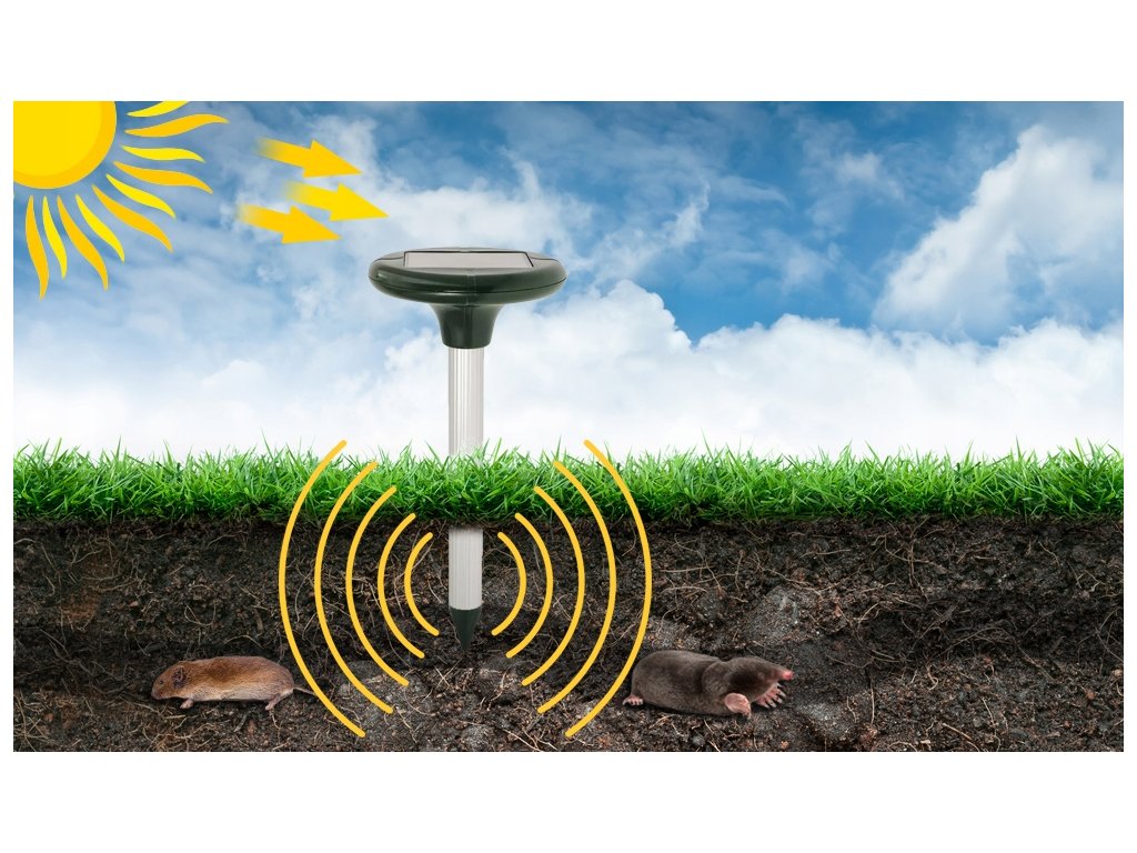 Włożony w ziemię odstraszacz emituje dźwięki o zmiennej częstotliwości od 400 do 1000 Hz. Sygnały wpływają na układ nerwowy kretów i gryzoni. Powodują strach, niepokój i brak orientacji w terenie. Po kilku dniach szkodniki opuszczają teren. Dźwięk wydawany jest w trzydziestosekundowych interwałach.