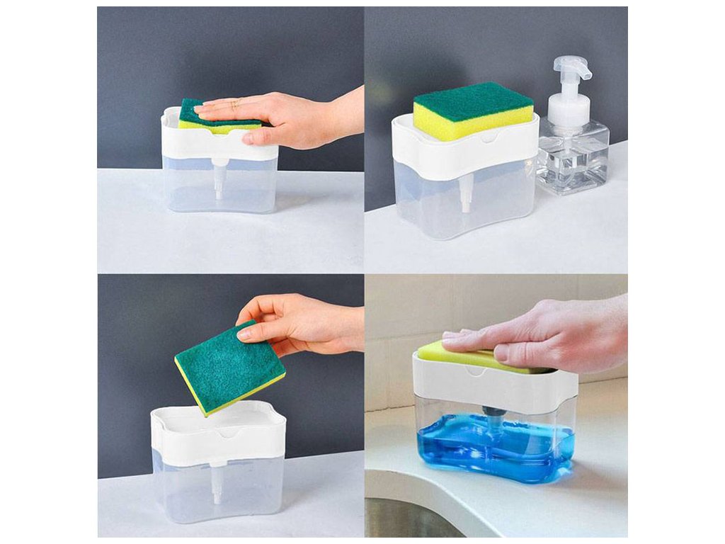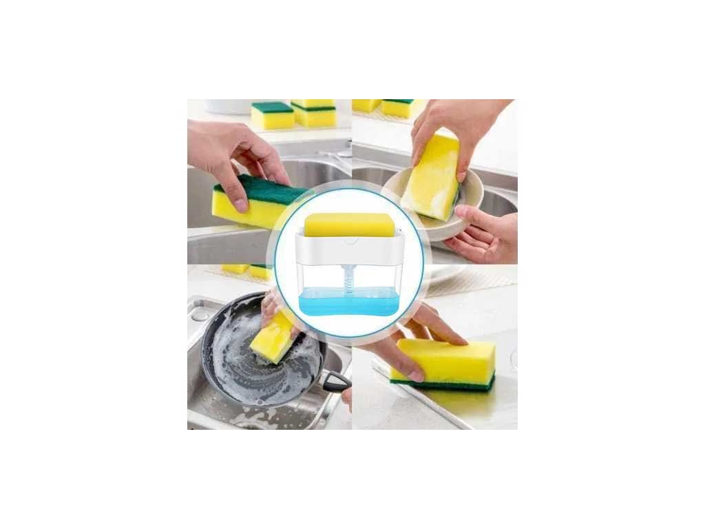 Wraz z rewelacyjnym dozownikiem do kuchni otrzymujesz również wysokiej jakości gąbkę do naczyń. Umieść gąbkę na górze dozownika i zawsze będzie gotowa do użycia. To naprawdę bardzo praktyczne.