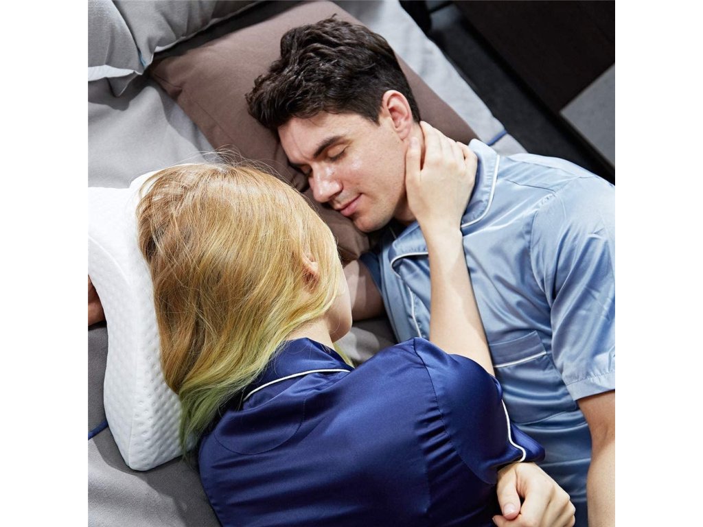 Ta specjalna wygięta poduszka jest szczególnie odpowiednia dla par. Dzięki specjalnemu kształtowi może utrzymać ciężar głowy partnera. Poduszka zmniejsza nacisk na rękę, która w ten sposób nie cierpi. Możesz tak wygodnie leżeć godzinami.
