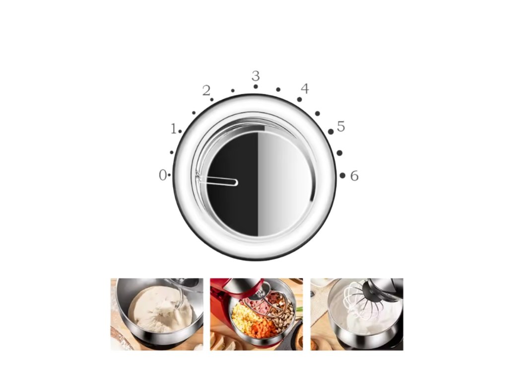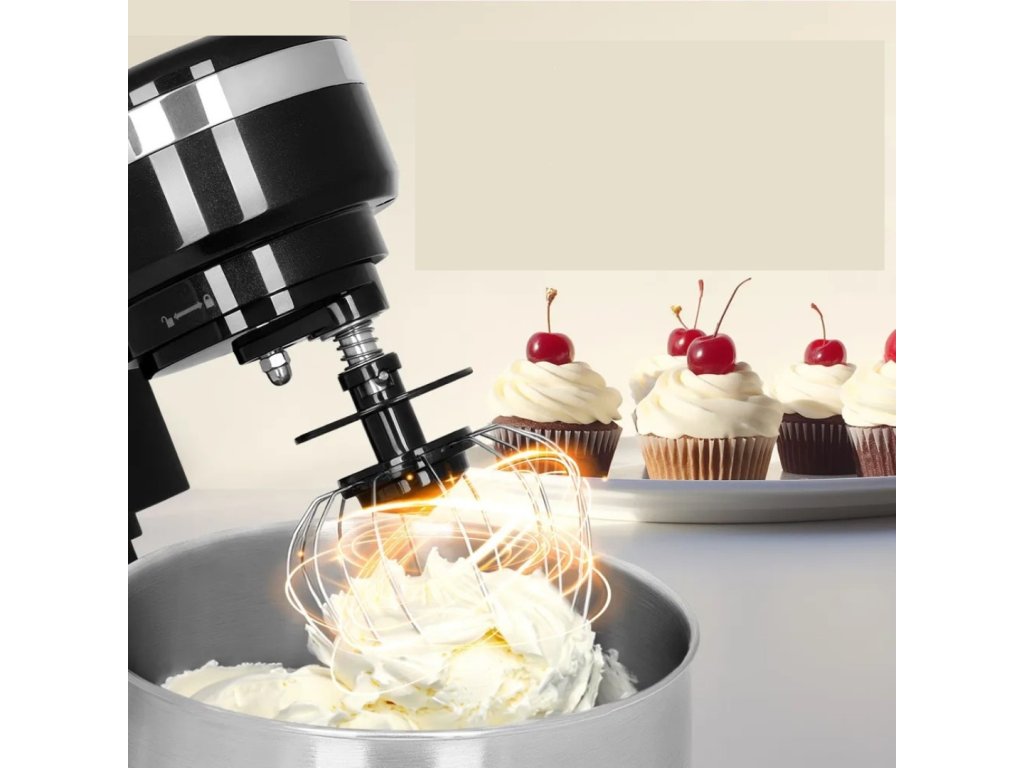 Zapewnia niezmiennie wysoką wydajność i wystarczającą moc do wyrabiania ciężkich ciast i miksowania gęstych kremów. Idealny do wymagających przepisów, które wymagają szybkości i precyzji.