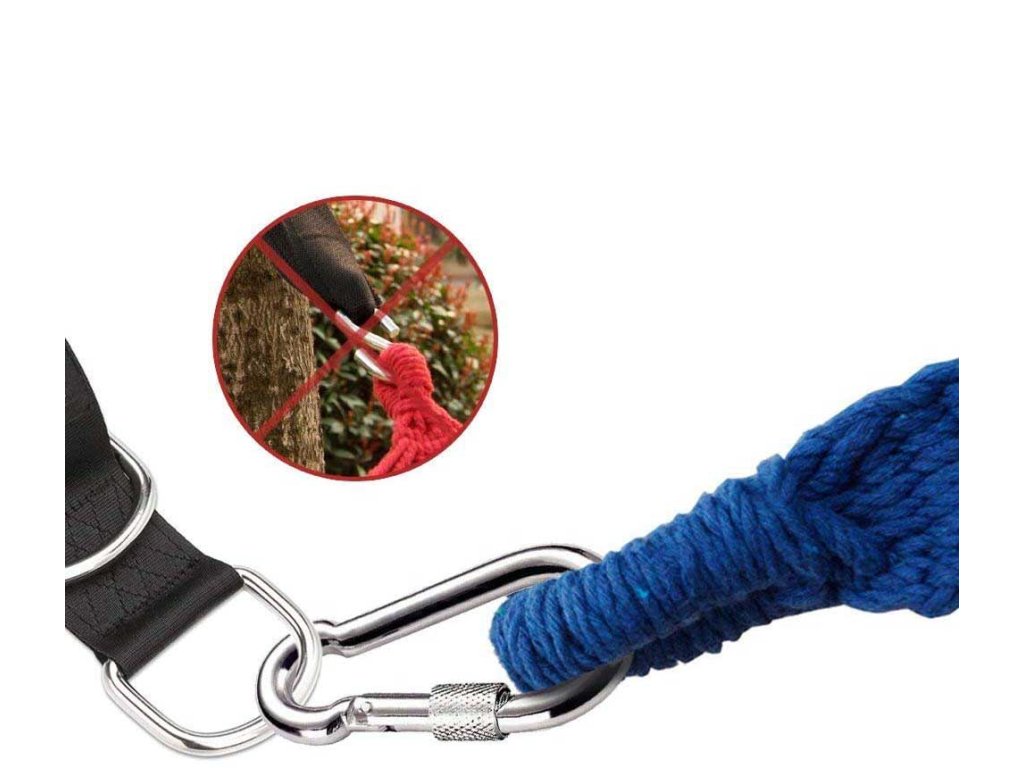 Sprzączki i karabińczyki, które są częścią tego niesamowitego pasa do hamaka, są wykonane z wysokiej jakości litej stali. Są gwarancją bezpieczeństwa.