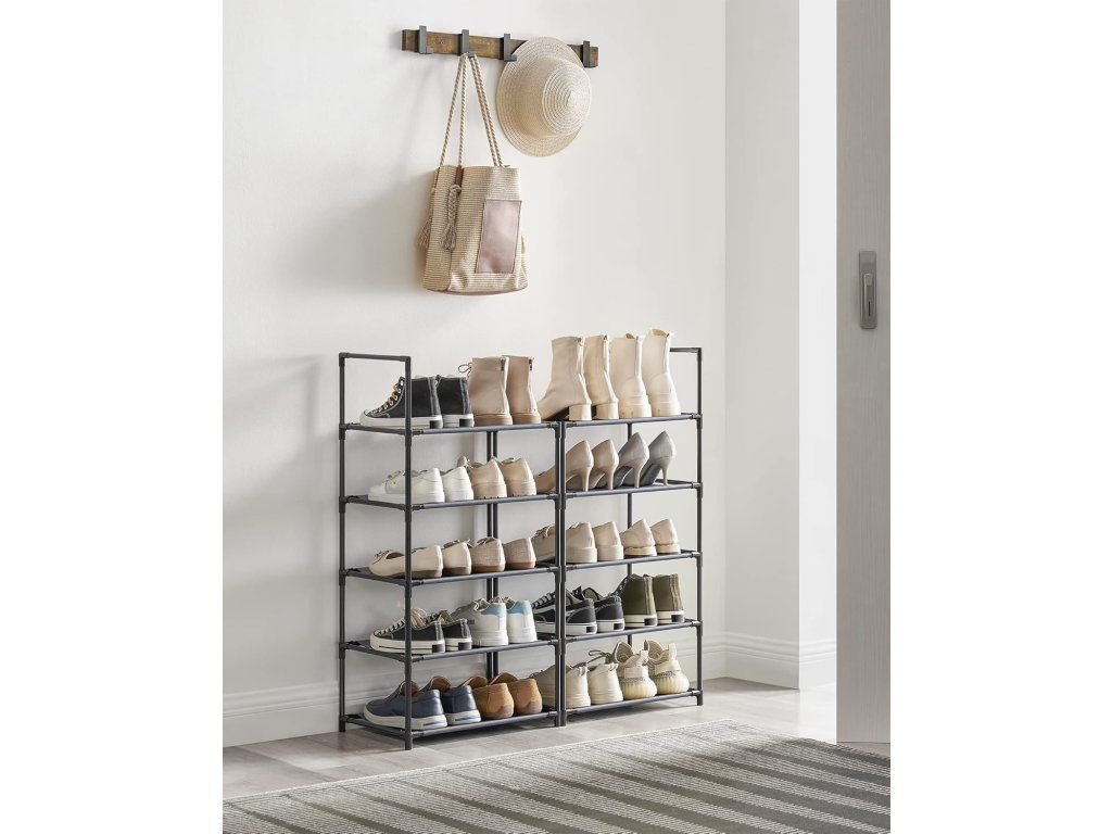 Taki układ półek pozwala na przechowywanie różnego rodzaju obuwia – od niskich trampek po wysokie botki, które można wygodnie umieścić na górnej półce. Dzięki odpowiedniej wysokości stojaka cały organizer wygląda lekko i nie zagraca przestrzeni.