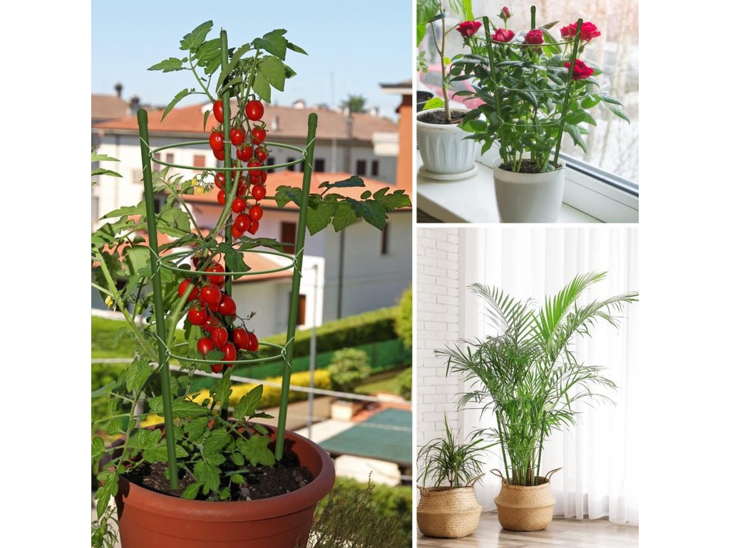 Okrągła podpórka dla roślin zapewnia stabilność, dopływ światła i pomaga chronić przed uszkodzeniami. Służy również jako profilaktyka chorób, takich jak pleśń. Utrzymując rośliny nad ziemią, chroni także ich owoce.