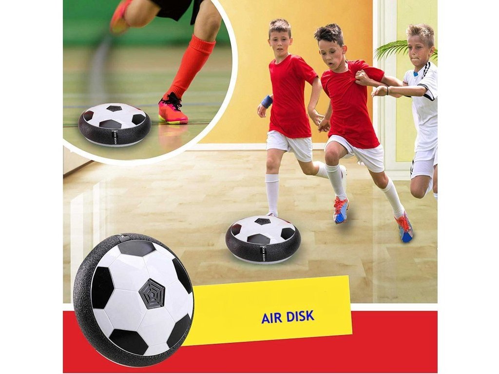 Piłka nożna air disk to poręczna piłka do mieszkania z oświetleniem LED. Nic nie popsuje i sprawi dużo frajdy. Nie wyskakuje w powietrze jak zwykła piłka, ale ślizga się po podłodze i dzięki temu nie pozostawia rys. Docenią to zarówno dorośli gracze, jak i rodzice aktywnych dzieci. Jest to możliwe dzięki specjalnej konstrukcji, na którą składa się dolna powierzchnia ślizgowa z wentylatorem oraz solidna górna osłona ze stabilną piankową osłoną chroniącą meble, ściany i narożniki.