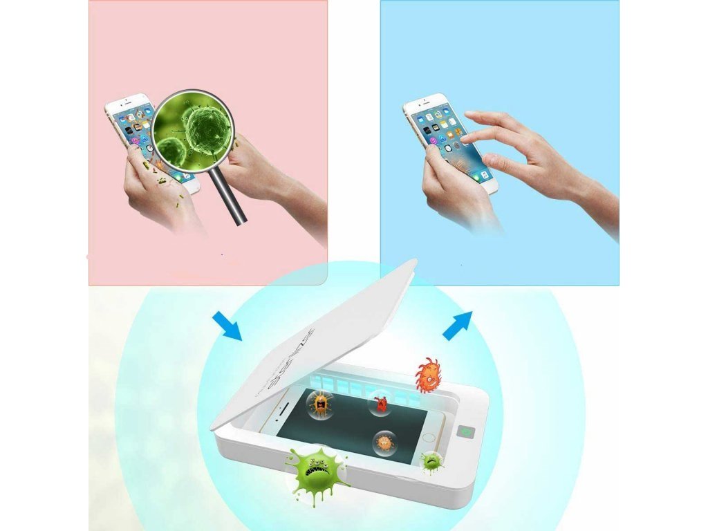 Pudełko do sterylizacji to przydatne narzędzie dla każdego. Twój telefon komórkowy pozbędzie się wszelkich bakterii i wirusów. Jest kompatybilny ze wszystkimi urządzeniami mobilnymi do 6,5 cala, takimi jak iPhone, Samsung, Nexus, LG, Motorola, Sony, HTC, Huawei, Honor i inne.