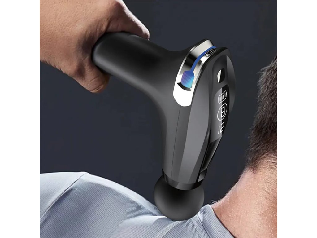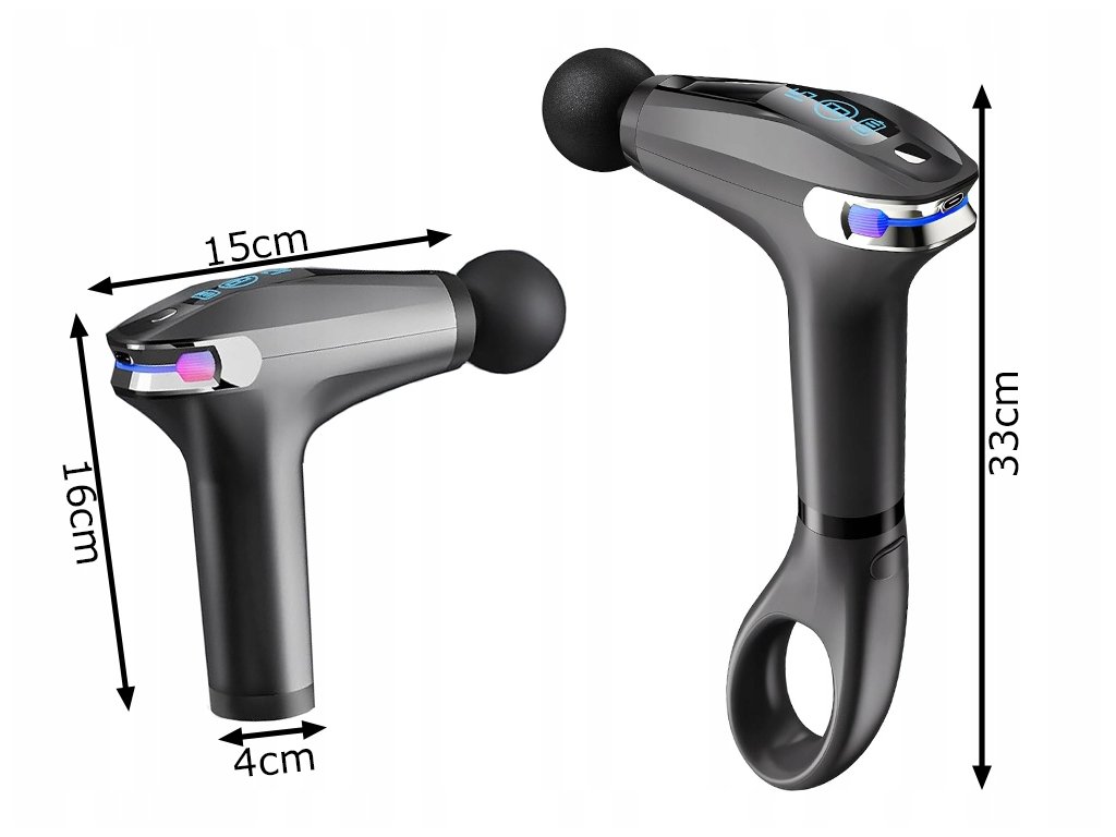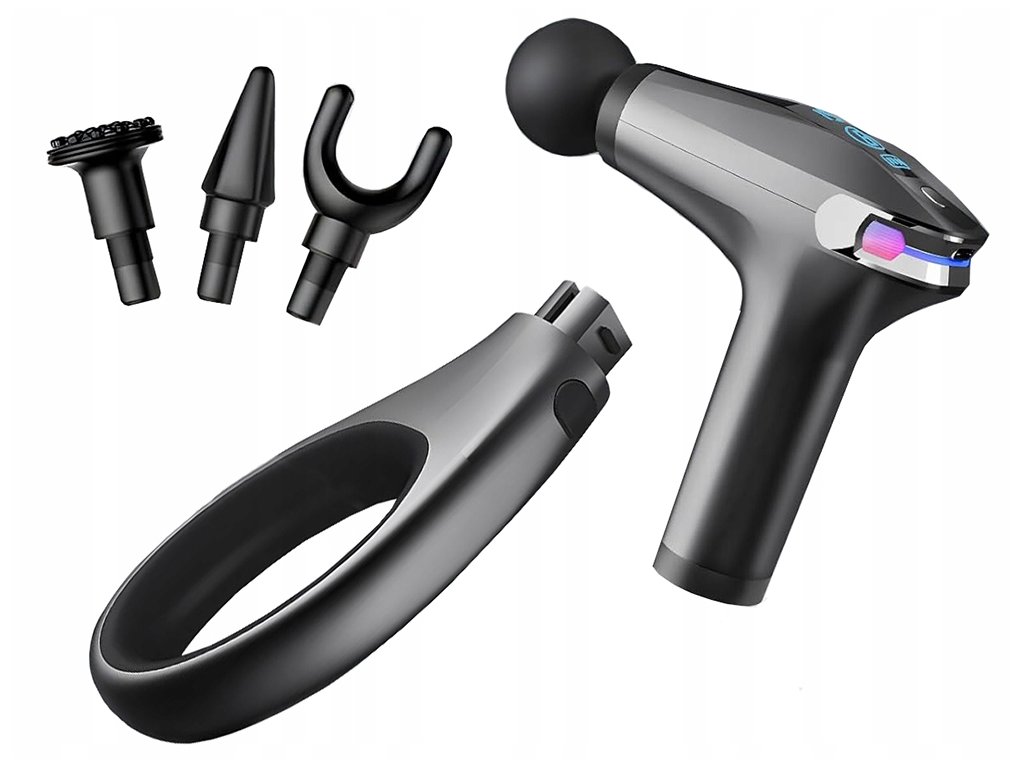 Pistolet do masażu wykonany jest z materiałów najwyższej jakości. Zawiera 4 głowice masujące do różnych rodzajów masażu z regulowaną intensywnością.