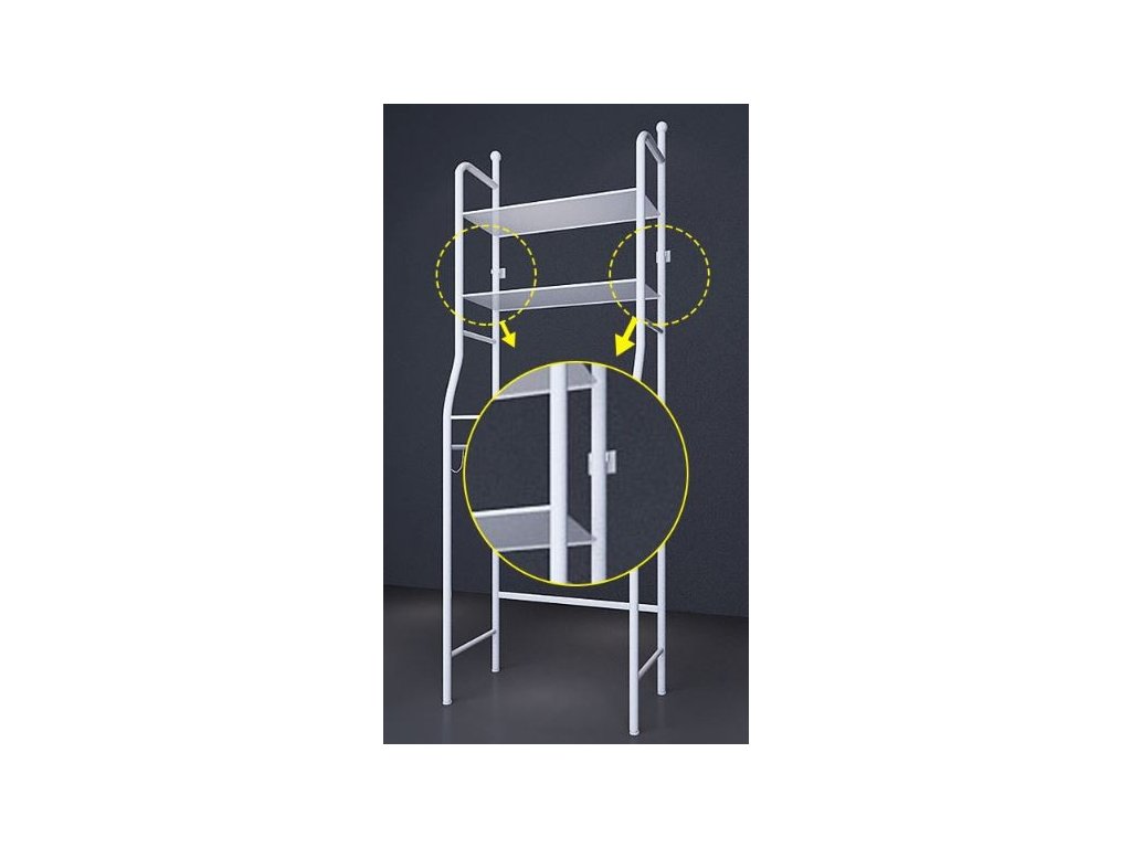 Elastyczna konstrukcja pozwala na umieszczenie półki nad toaletą, wanną lub pralką, oszczędzając w ten sposób miejsce i zachowując porządek. Pusta przestrzeń pod półkami jest idealna do umieszczenia tych urządzeń.