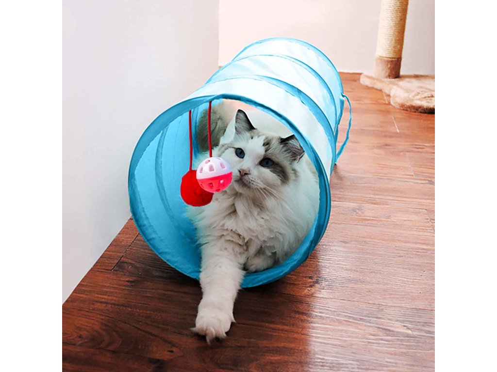 Składany tunel to prawdziwa zabawa dla Twojego kota. Na tunelach zawieszone są 2 zabawki, które od pierwszego wejrzenia zachwycą Twojego pupila. Kilka tuneli można również związać sznurkami, dzięki czemu powstaje długi tor przeszkód.