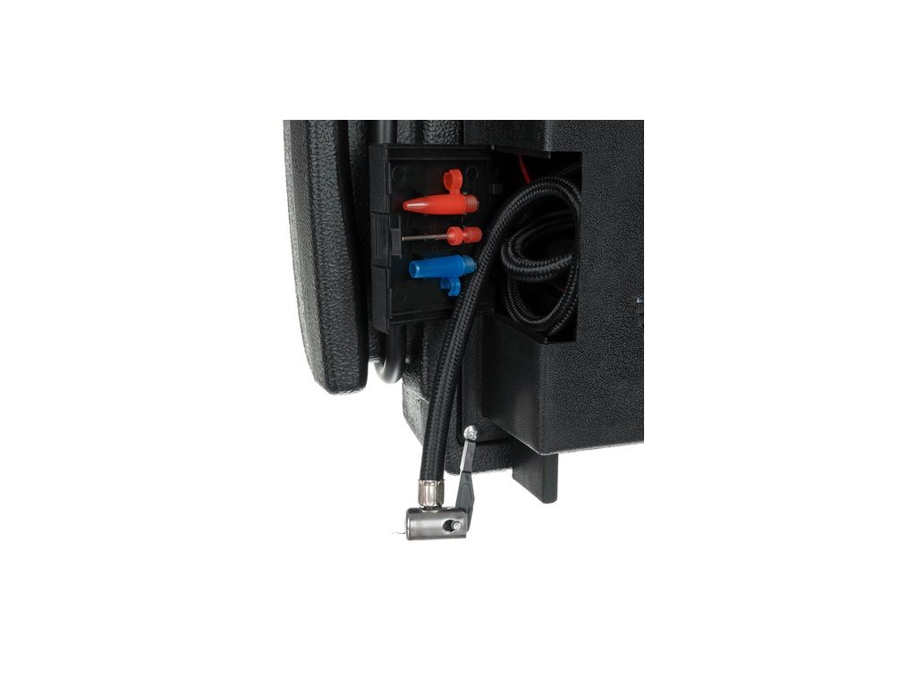 To wyjątkowe źródło rozruchowe posiada również wbudowaną sprężarkę powietrza z manometrem oraz wężyk zakończony zaworkiem samochodowym. Ciśnienie sprężarki wynosi 20 barów / 300 PSI. Dodatkowo to praktyczne urządzenie posiada 3 dysze do pompowania różnych akcesoriów takich jak piłki, materace itp.
