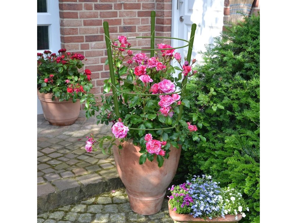 Solidne materiały to oczywistość. Okrągła podpórka dla roślin jest stabilna i wystarczająco trwała, aby chronić rośliny nawet przy niesprzyjającej pogodzie. Stabilność zapewniają 3 pręty, pomiędzy którymi znajdują się 3 kółka.