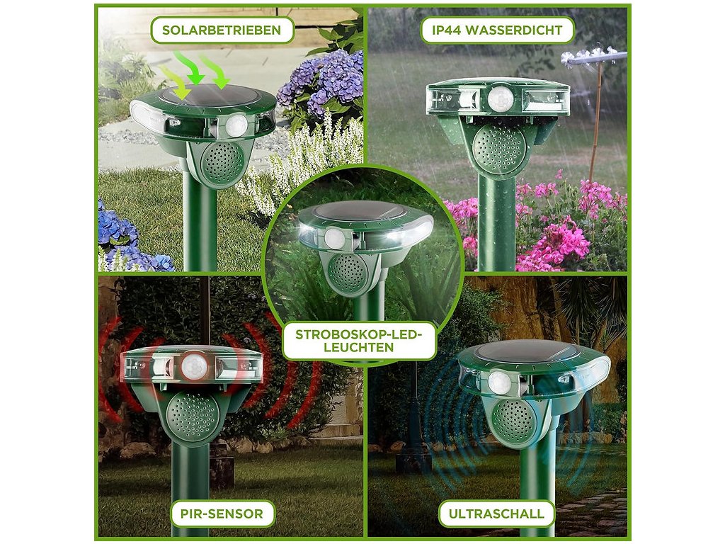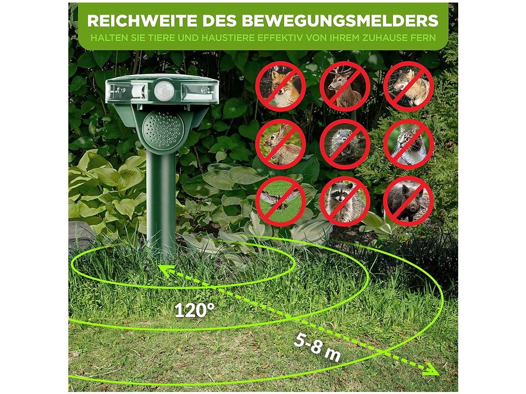 Poznaj najbardziej ekologiczny sposób na odstraszanie niechcianych zwierząt. Od teraz nie potrzebujesz już toksycznych sprayów ani innych metod. Po prostu wbij ten odstraszacz w ziemię i zobacz, jak pomaga wypędzić nieznośnych gości z ogrodu! Dzięki nowoczesnej technologii sygnałów o częstotliwości ultradźwiękowej może chronić Twoją ziemię bezgłośnie i nietoksycznie.