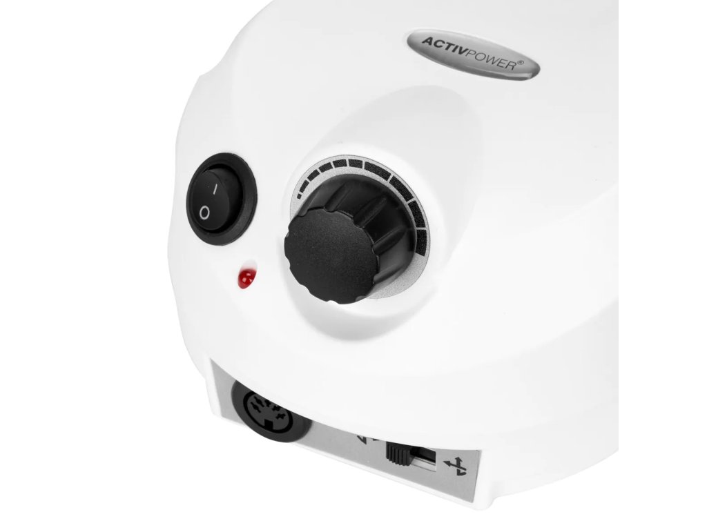 Ta mocna szlifierka posiada płynną regulację prędkości za pomocą pokrętła. Dzięki temu z łatwością dostosujesz prędkość do swoich potrzeb. Wysoki zakres obrotów do 35 000 obr./min sprawdzi się przy każdym rodzaju pielęgnacji paznokci, zarówno w użytku profesjonalnym, jak i domowym. Wymienne głowice montuje się szybko i wygodnie.