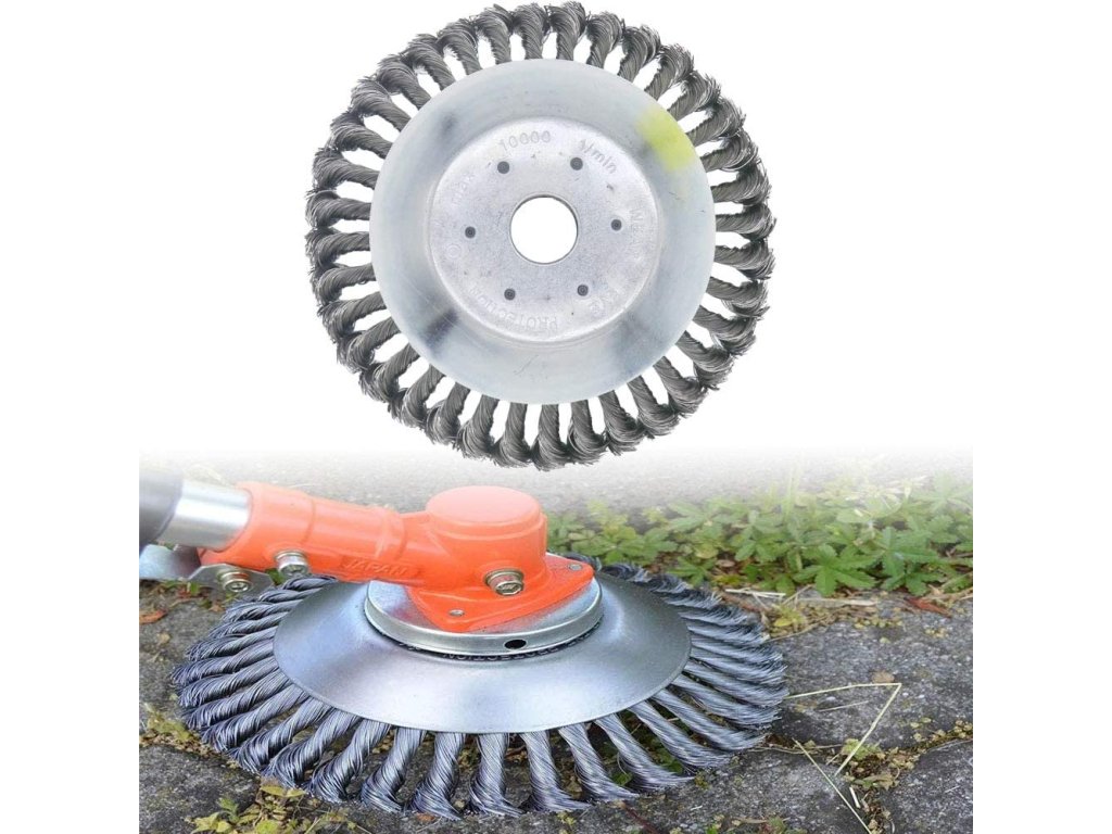 Dzięki ostrzu ze stali węglowej, ta niesamowita szczotka do usuwania chwastów z łatwością usunie chwasty, trawę oraz zarośla porastające płytki chodnikowe. Włosie na tarczy jest skręcone w kilkanaście szczotek.