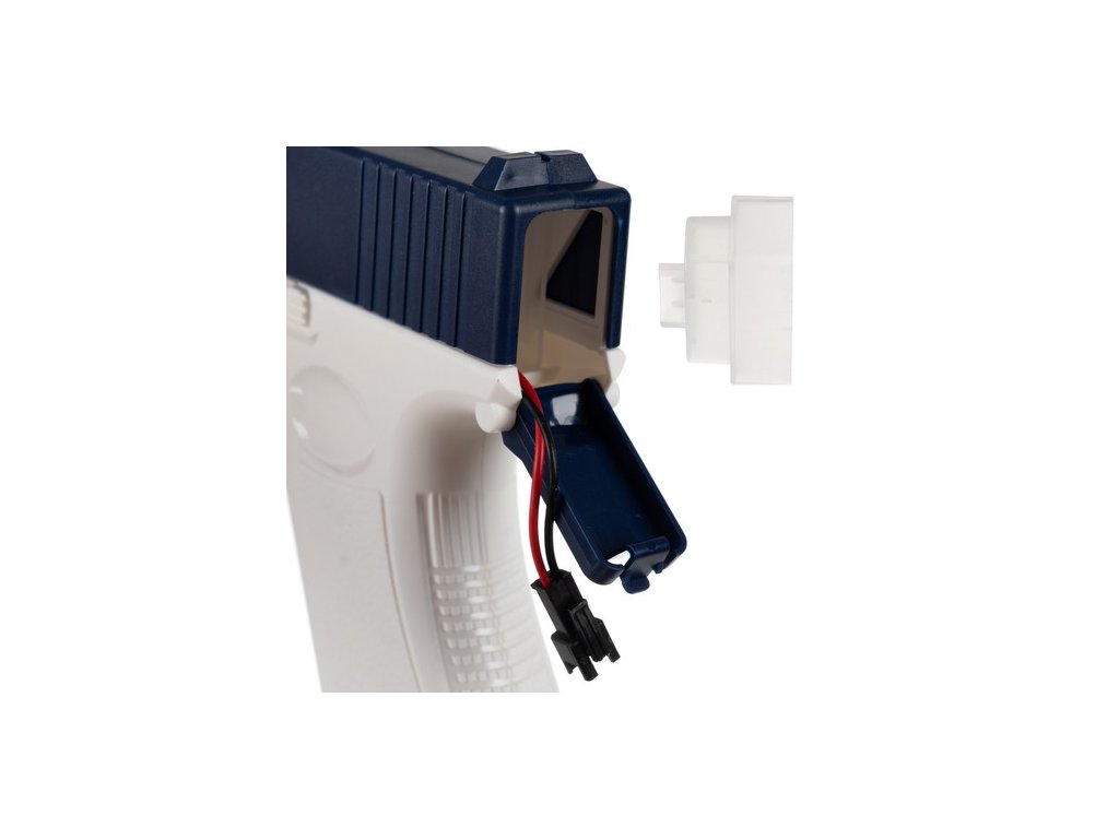 Akumulator jest niewątpliwie nieocenioną częścią tego automatycznego pistoletu na wodę. Zapewnia dynamikę całej grze. Ładuje się go za pomocą dołączonego kabla USB i po naładowaniu jest w 100% gotowy do wykonania swojego zadania.