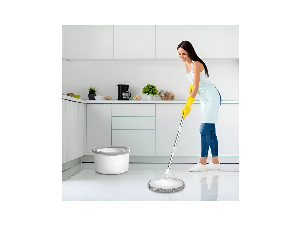 Ten praktyczny mop obrotowy z wiadrem idealnie nadaje się do czyszczenia na sucho i na mokro wszystkich powierzchni w domu. Usuwa kurz, okruchy i zaschnięty brud, nie niszcząc podłogi. Pokrycie z mikrofibry ma doskonałe właściwości chłonne i jest łatwe w czyszczeniu.