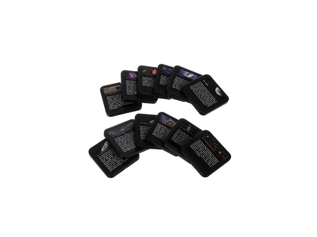 - 12 slajdów (Księżyc 3D, Mgławica Ameryka Północna, Mały Obłok Magellana, Galaktyka, MN60-UCD1, Układ Słoneczny, Tajemnicza Góra, NGC4302-NGC4298, Głębokie Pole Hubble'a, Ziemia, Droga Mleczna, Galaktyka Andromedy)