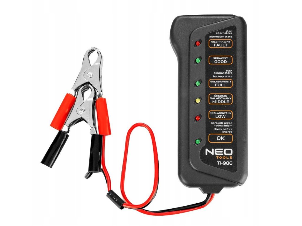 Odkryj tester akumulatorów samochodowych, który dostarczy Ci natychmiastowych informacji o stanie akumulatora. Wystarczy podłączyć zaciski bezpośrednio do zacisków akumulatora i obserwować wynik pomiaru. Nie potrzebujesz żadnych skomplikowanych urządzeń ani nawet profesjonalnej wiedzy.