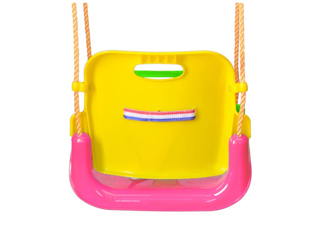 Huśtawkę z łatwością dostosujesz do wieku dziecka, dzięki zdejmowanej barierce przedniej i oparciu . Dla najmniejszych dzieci dostępne są także pasy zabezpieczające.