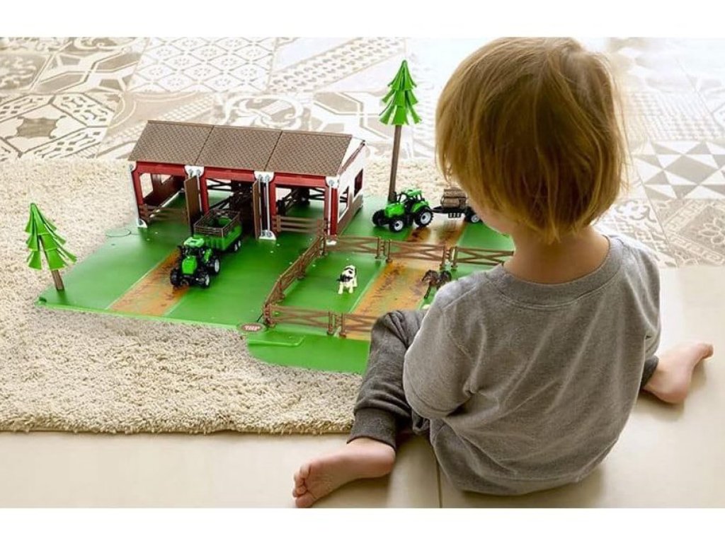 Wyjątkowy zestaw przenosi farmę ze wsi bezpośrednio do pokoju dziecięcego. W zestawie znajdują się drzewa, zagroda i stajnie z realistycznymi zwierzętami hodowlanymi. Dodatkowo na dzieci czekają dwa traktory z przyczepkami, które pozwalają na interaktywną zabawę i jeszcze więcej frajdy.
