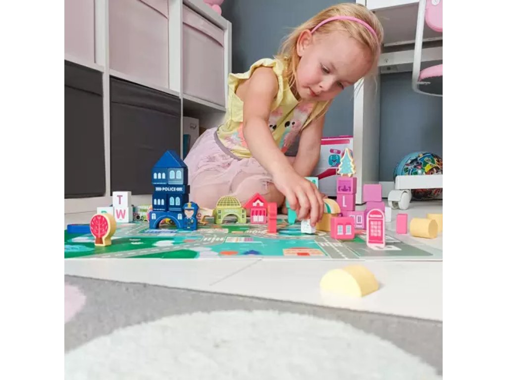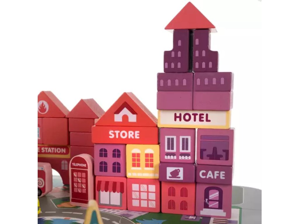 Zapewnij swoim dzieciom niezapomniane przeżycia pełne kreatywności i edukacji dzięki wyjątkowym drewnianym klockom Miasto 3 w 1.