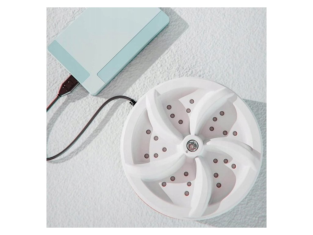 Przenośna pralka podróżna działa na bardzo prostej zasadzie. Mocny silnik z turbiną wprawi wodę w wir. Wirująca woda potrafi usunąć niektóre rodzaje plam, co docenisz np. na kempingu.