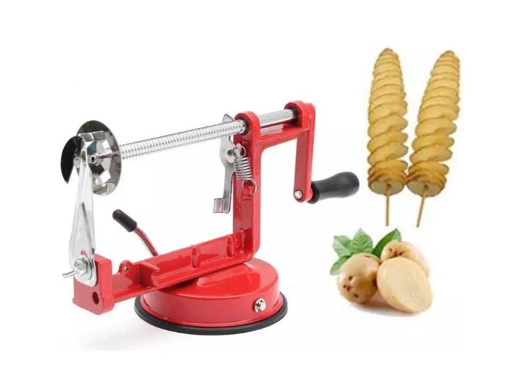 Przymocuj umyte ziemniaki do urządzenia, dopasuj spiralę do pożądanego kształtu i pokrój ziemniaka. Następnie usmaż go na gorącym oleju przez 3-4 minuty. Możesz posypać go różnymi przyprawami, aby uzyskać doskonały smak.