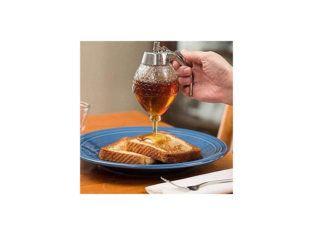 Zapomnij o irytującym rozlewaniu miodu, lepkich plamach i bałaganie. Dzięki temu wyjątkowemu dozownikowi natychmiast, wygodnie i bez bałaganu uraczysz się swoim przysmakiem. Możesz również użyć dozownika do syropu, czekolady, cukru i czegokolwiek innego. Wystarczy nacisnąć dźwignię na uchwycie, a wybrany produkt wypłynie od dołu. Kiedy puścisz dźwignię dozownik natychmiast się zamknie i nie będzie bałaganu.