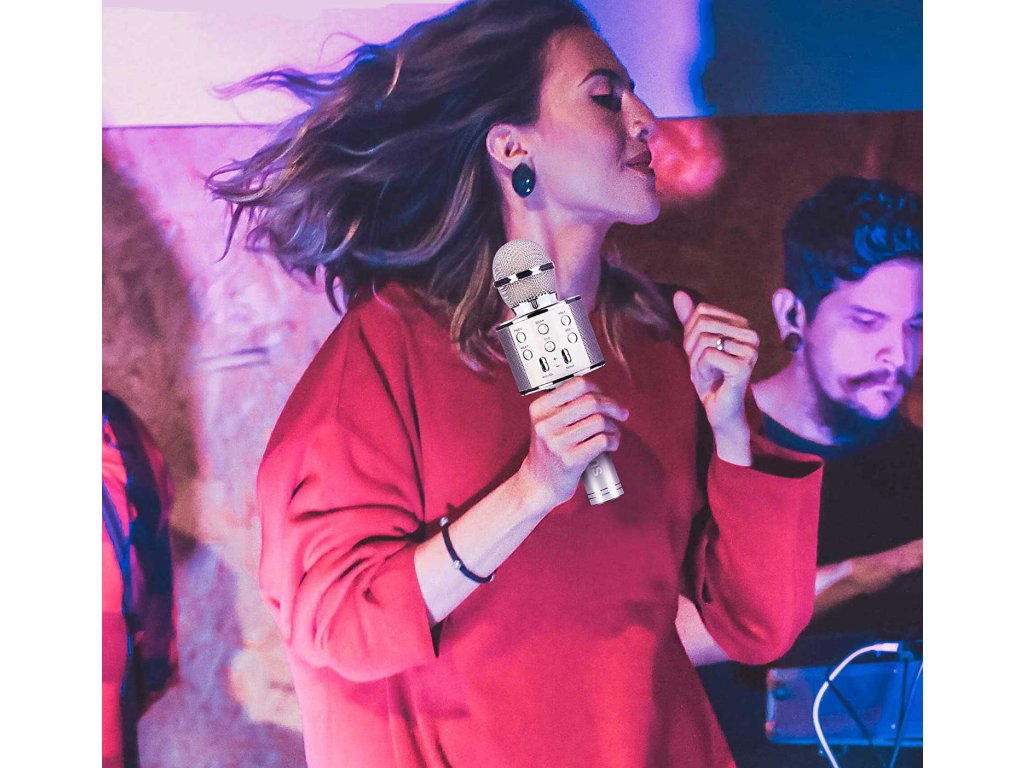 Karaoke daje Ci możliwość wcielenia się w rolę ulubionego piosenkarza i śpiewania hitów przy profesjonalnej muzyce. Ciesz się blaskiem reflektorów i aplauzem publiczności. Dzięki temu wspaniałemu mikrofonowi każdy może zostać gwiazdą.