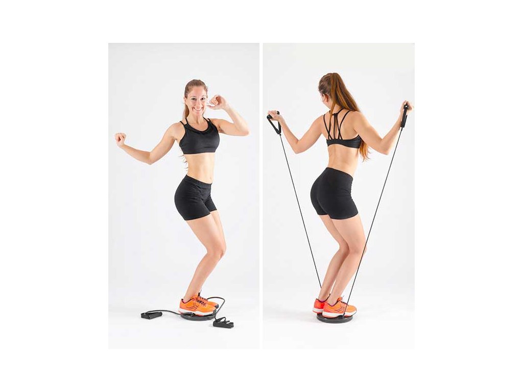 Wielofunkcyjny obrotowy dysk wzmacniający przeznaczony jest do wzmacniania mięśni górnej i dolnej połowy ciała. Wystarczy stanąć na Twisterze i wykonywać ruchy ciałem z boku na bok, co skutecznie wzmacnia mięśnie brzucha, bioder i pośladków. Dysk obrotowy nadaje się również do wzmocnienia górnej połowy ciała. W poniższym filmie możesz zobaczyć niektóre ćwiczenia z tym niesamowitym urządzeniem.